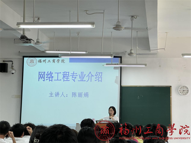 会上,陈丽娟老师从网络工程专业的课程介绍切入,分别从,什么是网络?网络的作用是什么?互联网+等角度,介绍了我们这个以网络为核心的信息时代的专业设置背景。并从计算机网络的发展现状、网络工程的人才需求和网络安全的严峻形式这几个方面对为什么要学习计算机网络作了补充说明。接着,陈丽娟老师告诉同学们要在大学生活中成为一个德智体美劳全方位发展的应用型人才,为同学们介绍了大学四年的课程体系以及敦促同学们尽早树立职业目标、人生方向。最后,陈老师向同学们提出了四点需要在大学生活中提升的能力:自我管理能力、自我学习能力、自我调节能力以及与人相处能力。