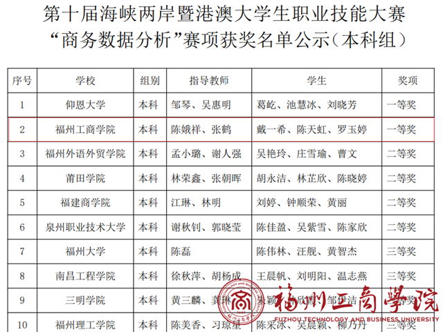 喜报|我校学子在第十届海峡两岸暨港澳大学生职业技能大赛商务数据分析赛项斩获一等奖
