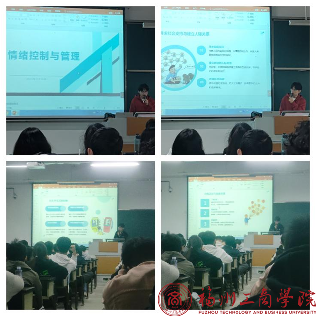 本次会议从情绪是如何产生的,为什么要管理情绪,如何进行情绪管理及情绪分享等方面进行宣讲,围绕不同情绪产生的原因展开,帮助同学们认识情绪在个人身上的表现形式。会议通过PPT展示帮助同学们更好的了解情绪,并学会避免出现负面情绪,疏解自身情绪,积极调节已出现的不良情绪等方法,会议上重点向同学们介绍了常见的解决自身压力的方法。
