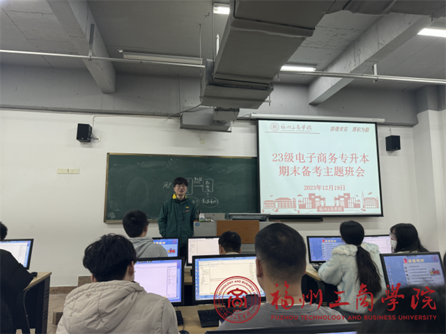为增强同学主动学习的意识,掌握正确的学习方法,为将要来临的期末考试做准备。23级电子商务(专升本)1班于12月19日在S209开展了备考期末主题班会。本次班会由班主任陈一昌老师主持召开,班会历时40分钟。