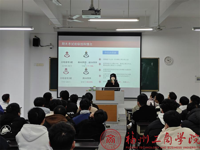 2月26日下午,2023级电子信息工程(专升本)专业于教学楼E303开展《2023-2024学年第一学期期末成绩总结大会》主题班会。全体同学参会。