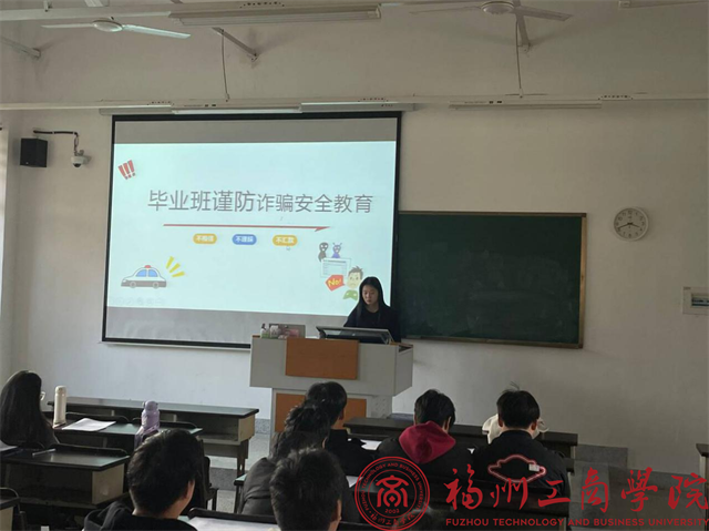 会上,辅导员通过播放一系列真实的诈骗案例视频,让同学们直观地感受到了诈骗的多样性和危害性。随后,她详细介绍了常见的诈骗类型,如网络诈骗、电信诈骗、招聘诈骗等,并针对每种类型的诈骗特点和防范方法进行了深入讲解。辅导员提醒同学们要警惕网络购物中的虚假链接和钓鱼网站,不要随意透露个人银行卡号、密码等重要信息,遇到可疑情况及时与警方联系。辅导员告诫同学们现在正是毕业实习的阶段,要谨慎对待高薪诱惑,注意核实招聘单位的真实性和合法性,避免陷入传销等非法组织。