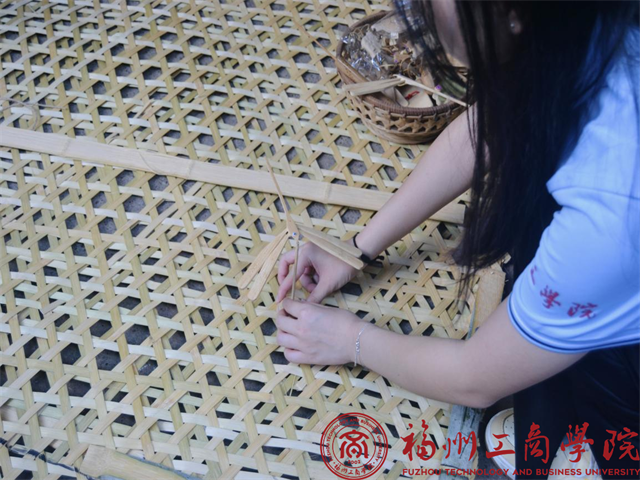 图为实践队成员在莲池传统文化街区体验竹编技艺