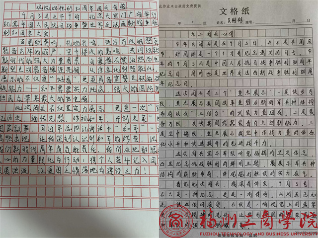 此次活动特色鲜明,成效显著。一是将观看阅兵与写作实践相结合,要求每位学生在观看后提交观后感,引导大家从被动观看到主动思考,深化对阅兵意义的理解。二是开展专业特色教育,鼓励学生结合自身专业,重点关注阅兵式中展示的先进军事科技,撰写具有工科特色的技术分析型观后感,培养学生的专业认同感和科技报国志向。三是构建"观看-思考-表达"的全流程教育模式,通过观后感评选、优秀作品展示等环节,延伸教育链条,强化教育效果。