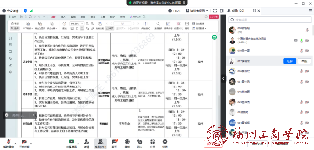 宣讲会上,中海创集团徐经理通过播放宣传片、PPT展示、线上交流等方式向同学们介绍公司概况以及职业发展方向、人员需求、晋升机制、薪酬福利等情况。本次宣讲会为毕业生了解企业信息打开了一个新的窗口,主讲人具备专业的素养,以丰富的案例及良好的互动模式带动宣讲活动的气氛。