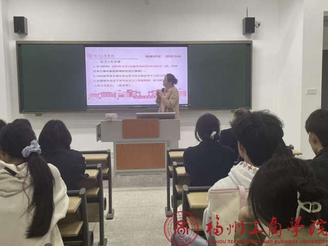 会上,陈娥祥围绕“毕业实习的目的与意义”、“实习方法与时间安排”、“实习导师制度”以及“实习具体要求”四个方面进行了详细的讲解,强调实习与毕业设计的紧密关联,提醒同学们严格遵守实习节点,认真完成日志、报告等材料,确保实习过程规范有序、学有所获。