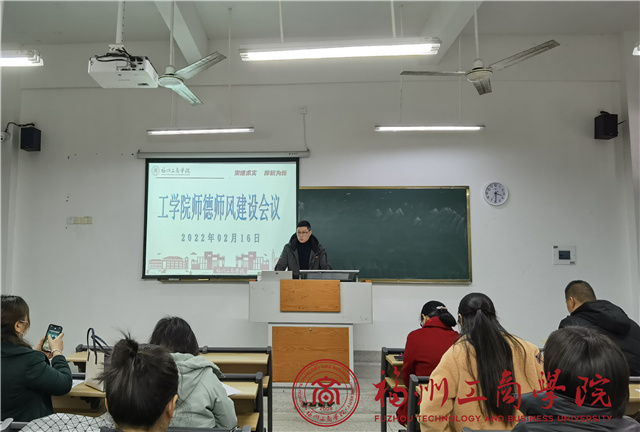 为不断创新举措推动师德师风建设走深走实,提升yl7703永利集团教师思想政治素质和师德水平,2月16日下午,我院师德师风专题会议在教学楼C105教室举行,院党委书记张鹤主持会议,学院全体教职工参加。