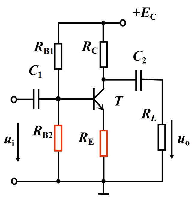 (1)抓住主要矛盾,简化电路分析过程。在分析上图所示的分压式偏置电路时,在讲授如何确定基极电位的过程中,考虑到基极电流很小,在基极的节点电流可以忽略,是事物的“次要矛盾”。此时,基极的两个电阻RB1和RB2近似看为串联,从而确定电路的基极电位。