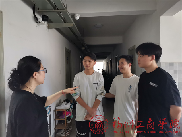 郑丹老师走访过程中,她首先仔细查看学生宿舍的生活设施、清洁卫生、物品摆放、宿舍环境、用电安全等方面的情况,反复叮嘱学生要增强安全防范意识,注意卫生及防火安全,保持室内清洁以及日常通风;其次,她深入与学生沟通交流,关心学生日常生活以及思想变化,建议学生合理安排自己的时间,注重劳逸结合,营造积极健康的宿舍文化;最后,她强调了期末考纪,要自觉做到诚信考试,并鼓励大家以愉悦轻松的心情积极备考。