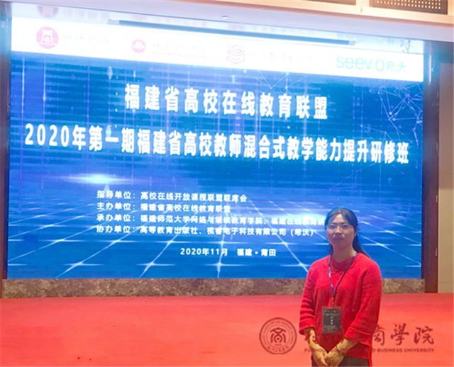 为进一步提高我校信息化教学水平,深化教育教学改革,增强课堂教学的有效性。11月6日至7日,由福建省高校在线教育联盟主办的2020年第一期福建省高校教师混合式教学能力提升研修班在莆田举行,共250余名各高校教师参会,yl7703永利集团高微老师作为我校教师代表参会。
