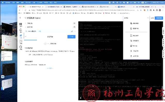 最后,重点详细展示的区块链底层技术平台搭建过程及区块链实验课程的实施步骤,为下步实验室正式使用提供了很好的基础和保障。