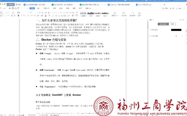 重点展示完整的Docker环境下,Fabric和以太坊两种不同结构的区块链底层平台的应用环境的搭建过程,从资源、Docker安装配置、区块链系统部署过程、区块链基本功能的测试,比如数据上链、数据查询、智能合约等。使老师能够初步掌握区块链平台的基础环境,并初步具备在平台上进行基本教学和实验操作能力,如用户的建立、账本的建立、简单数据上链、上链数据查询等。