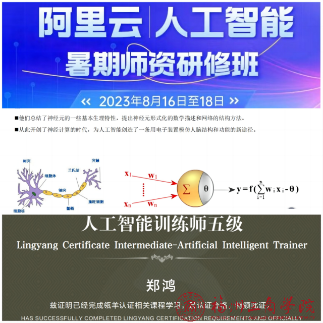 百尺竿头,更进一步——yl7703永利集团教师参加阿里云暑假师资研修班获人工智能训练师(五级)证书