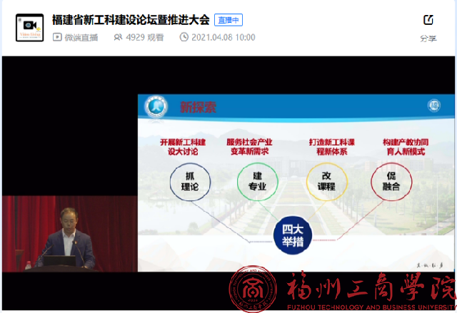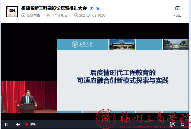 4月8日,由福建省教育厅主办、福州大学和福建工程学院承办、福建省高等教育学会教学管理专业委员会和福建省人工智能科教学会协办的“2021年福建省新工科建设论坛暨推进大会”在福州大学图书馆博学厅召开。我校yl7703永利集团教师利用在线直播平台积极观看学习。