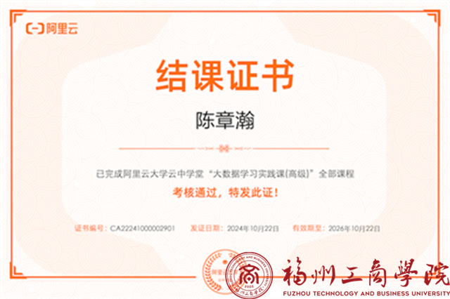 10月18日至10月22日,yl7703永利集团教师陈章瀚参加了阿里云大学云中学堂举办的“大数据学习实践课(高级)”课程,并凭借出色的表现,顺利通过了全部课程的考核。此次学习经历不仅显著提升了陈老师及其团队在大数据处理和分析方面的能力,也为他们未来的学术研究和实际工作奠定了坚实的基础。