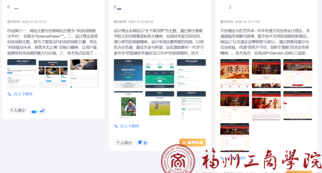 任务发布后,课堂转变为“项目工坊”。学生在技术实现与内容构思中同步提升,代码编写与思想感悟相互促进。一名选择“非遗传承”主题的学生表示:“开发匠艺传承网站,不仅让我掌握了数据库动态展示技术,更让我体会到传统文化的魅力,意识到用现代技术守护非遗是我们这代人的责任。