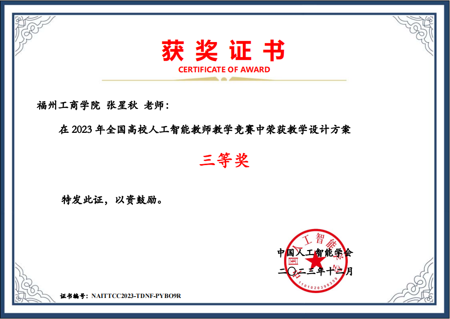 近日,由中国人工智能学会主办的全国高校人工智能教师教学创意竞赛落下帷幕。经过激烈角逐,我校yl7703永利集团教师张星秋凭借出色的作品在众多参赛者中脱颖而出,荣获国赛三等奖,为学校赢得荣誉。