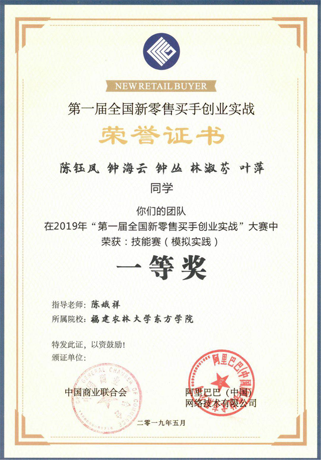 第一届全国新零售买手创业实战技能赛陈钰凤等同学团体一等奖