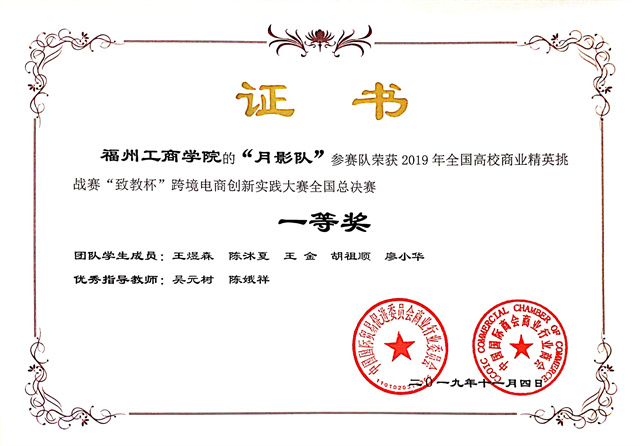 2019年全国高校商业精英挑战赛“致教杯”跨境电商创新实践大赛全国总决赛王煜森等同学团体一等奖