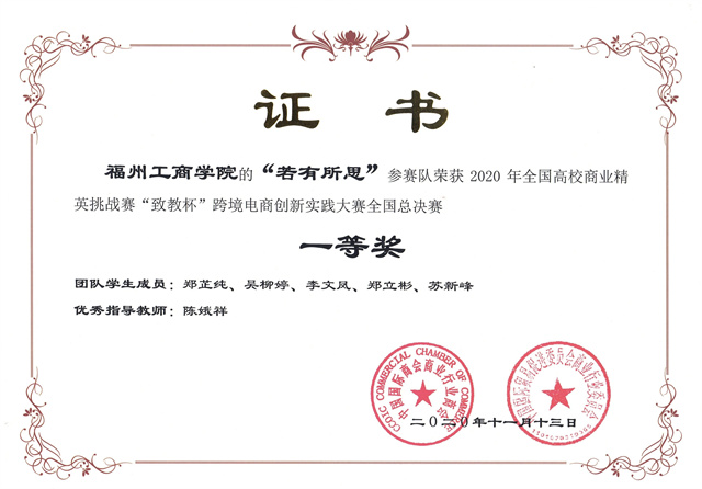 2020年全国高校商业精英挑战赛“致教杯”跨境电商创新实践大赛全国总决赛郑立彬等同学团体一等奖