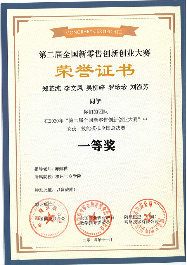 2020年全国高校商业精英挑战赛“致教杯”跨境电商创新实践大赛全国总决赛郑芷纯等同学团体一等奖